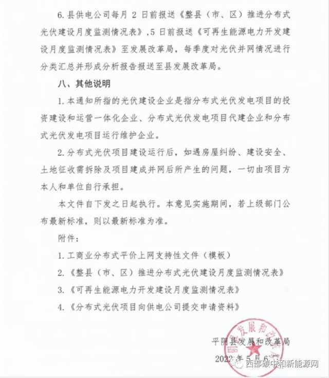 此外,整縣分布式開發(fā)按照“光伏+儲(chǔ)能”方式推進(jìn),根據(jù)具體消納情況配建或租賃不低于15%、2小時(shí)的儲(chǔ)能設(shè)施。電網(wǎng)消納能力不足時(shí),應(yīng)提高儲(chǔ)能配置比例及充放電時(shí)長(zhǎng),確保分布式光伏就地就近消納、滿足95%利用率要求。