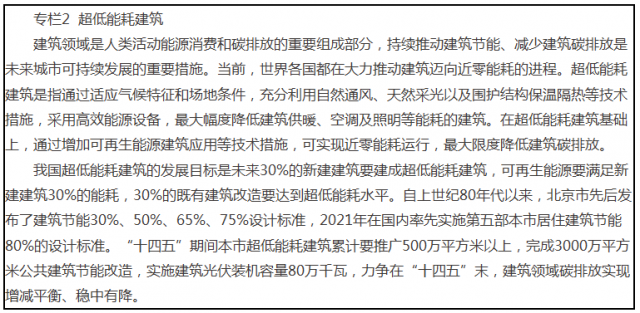 京環(huán)發(fā)〔2022〕16號(hào)各區(qū)人民政府,市有關(guān)部門(mén)及相關(guān)單位:經(jīng)市政府同意,現(xiàn)將《北京市“十四五”時(shí)期應(yīng)對(duì)氣候變化和節(jié)能規(guī)劃》印發(fā)給你們,請(qǐng)認(rèn)真貫徹執(zhí)行。北京市“十四五”時(shí)期應(yīng)對(duì)氣候變化和節(jié)能規(guī)劃“中國(guó)將力爭(zhēng)2030年前實(shí)現(xiàn)碳達(dá)峰,2060年前實(shí)現(xiàn)碳中和”,習(xí)近平總書(shū)記這一莊嚴(yán)宣誓彰顯了中國(guó)積極應(yīng)對(duì)氣候變化、努力構(gòu)建人類(lèi)命運(yùn)共同體、走綠色低碳發(fā)展道路的堅(jiān)定決心,為我國(guó)今后一個(gè)時(shí)期應(yīng)對(duì)氣候變化和節(jié)能工作指明了方向。北京作為首都,要將碳達(dá)峰碳中和作為謀劃首都未來(lái)發(fā)展的重要目標(biāo)和展示城市國(guó)際形象的重要契機(jī),充分把握時(shí)代機(jī)遇,統(tǒng)籌處理好經(jīng)濟(jì)社會(huì)發(fā)展與節(jié)能降碳、積極應(yīng)對(duì)氣候變化的內(nèi)在聯(lián)系,深入推進(jìn)能源低碳革命,推動(dòng)經(jīng)濟(jì)高質(zhì)量發(fā)展和生態(tài)環(huán)境高水平保護(hù)。按照國(guó)家和本市應(yīng)對(duì)氣候變化和節(jié)能工作總體部署,為努力實(shí)現(xiàn)碳排放達(dá)峰后穩(wěn)中有降,在碳達(dá)峰碳中和實(shí)踐進(jìn)程中探索出北京經(jīng)驗(yàn)、貢獻(xiàn)北京力量,確保應(yīng)對(duì)氣候變化和節(jié)能工作繼續(xù)走在全國(guó)前列,特制定本規(guī)劃。本規(guī)劃主要依據(jù)《北京城市總體規(guī)劃(2016年-2035年)》《北京市國(guó)民經(jīng)濟(jì)和社會(huì)發(fā)展第十四個(gè)五年規(guī)劃和二〇三五年遠(yuǎn)景目標(biāo)綱要》《北京市“十四五”時(shí)期生態(tài)環(huán)境保護(hù)規(guī)劃》《北京市“十四五”時(shí)期能源發(fā)展規(guī)劃》等文件編制。“十三五”時(shí)期,本市深入推進(jìn)應(yīng)對(duì)氣候變化與節(jié)能工作,率先建立能源消費(fèi)和碳排放“雙控”機(jī)制,先行先試協(xié)同推進(jìn)能源節(jié)約、溫室氣體排放控制和污染防治工作,綜合運(yùn)用市場(chǎng)機(jī)制、標(biāo)準(zhǔn)引領(lǐng)、技術(shù)推廣、工程支撐、宣傳引導(dǎo)等多重手段,取得積極成效。規(guī)劃主要目標(biāo)均超額完成,能源活動(dòng)碳排放進(jìn)入達(dá)峰平臺(tái)期,2020年能源消費(fèi)總量控制在6762萬(wàn)噸標(biāo)準(zhǔn)煤,單位地區(qū)生產(chǎn)總值能耗和二氧化碳排放分別累計(jì)下降23%以上和26%以上,能源利用效率和碳排放強(qiáng)度保持全國(guó)省級(jí)地區(qū)最優(yōu)水平。(一)綠色低碳的高質(zhì)量發(fā)展格局基本形成深入落實(shí)城市戰(zhàn)略定位,率先樹(shù)立減量發(fā)展理念,經(jīng)濟(jì)高質(zhì)量發(fā)展邁出堅(jiān)實(shí)步伐。發(fā)布北京市新增產(chǎn)業(yè)禁止和限制目錄,并動(dòng)態(tài)調(diào)整。嚴(yán)格開(kāi)展固定資產(chǎn)投資項(xiàng)目節(jié)能審查,從源頭禁止建設(shè)高耗能、高排放項(xiàng)目。累計(jì)淘汰退出2154家不符合首都功能的一般制造業(yè)和污染企業(yè),工業(yè)能耗和碳排放量持續(xù)下降。積極開(kāi)展綠色制造體系創(chuàng)建,創(chuàng)建國(guó)家級(jí)綠色工廠67家。金融、信息、科技等現(xiàn)代服務(wù)業(yè)優(yōu)勢(shì)更加凸顯,數(shù)字經(jīng)濟(jì)增加值占地區(qū)生產(chǎn)總值比重超四成,全市地區(qū)生產(chǎn)總值先后跨越兩個(gè)萬(wàn)億臺(tái)階,人均地區(qū)生產(chǎn)總值和全員勞動(dòng)生產(chǎn)率保持全國(guó)領(lǐng)先。大幅減少煤炭用量,平原地區(qū)基本實(shí)現(xiàn)無(wú)煤化,全市煤炭消費(fèi)總量由2015年的1165萬(wàn)噸削減到2020年的135萬(wàn)噸,煤炭占能源消費(fèi)總量的比重下降至1.5%。天然氣消費(fèi)占比上升到37.2%,電力消費(fèi)占比為27.8%,實(shí)現(xiàn)了能源結(jié)構(gòu)優(yōu)化轉(zhuǎn)型,化石能源內(nèi)部清潔化調(diào)整基本完成。因地制宜發(fā)展光伏、風(fēng)電、地?zé)岬瓤稍偕茉矗e極增加外調(diào)綠電,制定實(shí)施強(qiáng)有力的光伏、風(fēng)電支持政策,可再生能源占比達(dá)到10.4%。(三)重點(diǎn)領(lǐng)域節(jié)能降碳效果全面顯現(xiàn)積極推廣綠色建筑,累計(jì)建設(shè)綠色建筑1.28億平方米,示范推廣超低能耗建筑53萬(wàn)平方米,穩(wěn)步推進(jìn)裝配式建筑發(fā)展,新建裝配式建筑面積累計(jì)超過(guò)5400萬(wàn)平方米。大力發(fā)展低碳交通,軌道交通運(yùn)營(yíng)里程達(dá)到726公里,新能源車(chē)輛達(dá)到40余萬(wàn)輛。構(gòu)建市場(chǎng)導(dǎo)向的綠色技術(shù)創(chuàng)新體系,推廣200多項(xiàng)先進(jìn)適用節(jié)能技術(shù)產(chǎn)品,實(shí)施新一輪節(jié)能減排促消費(fèi)政策,持續(xù)提升節(jié)能家電市場(chǎng)占有率。完成新一輪百萬(wàn)畝造林綠化任務(wù)和森林碳匯提升工程,森林覆蓋率達(dá)到44.6%,森林碳匯儲(chǔ)量增加約200萬(wàn)噸。成立市委生態(tài)文明建設(shè)委員會(huì),下設(shè)大氣污染綜合治理及應(yīng)對(duì)氣候變化工作小組、推動(dòng)形成綠色發(fā)展方式和生活方式工作小組,建立了各區(qū)和各部門(mén)相互協(xié)作的工作機(