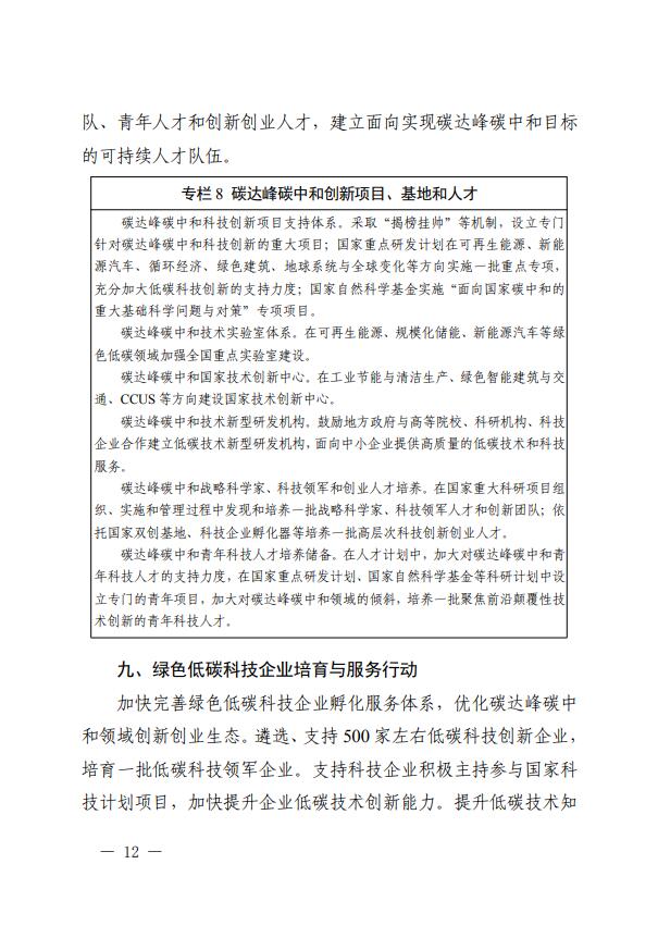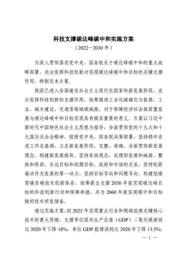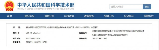 8月18日,科技部、國家發(fā)改委、工信部、生態(tài)環(huán)境部、住建部、交通部、中科院、工程院、國家能源局等九部門聯(lián)合印發(fā)《科技支撐碳達(dá)峰碳中和實(shí)施方案(2022—2030年)》。