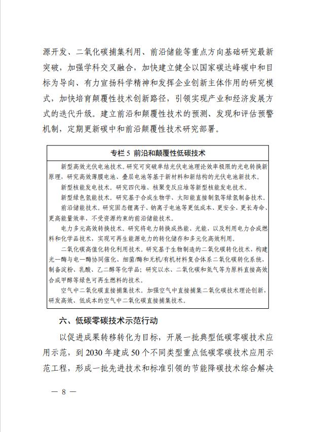 方案就加強(qiáng)科技支撐碳達(dá)峰碳中和涉及基礎(chǔ)研究、技術(shù)研發(fā)、應(yīng)用示范、成果推廣、人才培養(yǎng)、國際合作等多個(gè)方面提出了10項(xiàng)具體行動(dòng),到2030年,大幅提升能源技術(shù)自主創(chuàng)新能力,帶動(dòng)化石能源有序替代,推動(dòng)能源綠色低碳安全高效轉(zhuǎn)型。