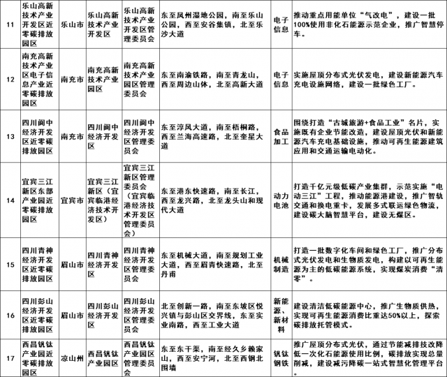 四川省近零碳排放園區(qū)試點(diǎn)擬確定名單