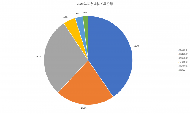 通過簽訂硅料長(zhǎng)單、鎖定優(yōu)質(zhì)客戶,硅料三巨頭能夠有效規(guī)避市場(chǎng)瘋狂擴(kuò)產(chǎn)、競(jìng)爭(zhēng)加劇對(duì)自身出貨量的影響,同時(shí)也能夠有效消化自身的新增產(chǎn)能,在高速增長(zhǎng)的市場(chǎng)中保持甚至提升自身的市場(chǎng)份額。