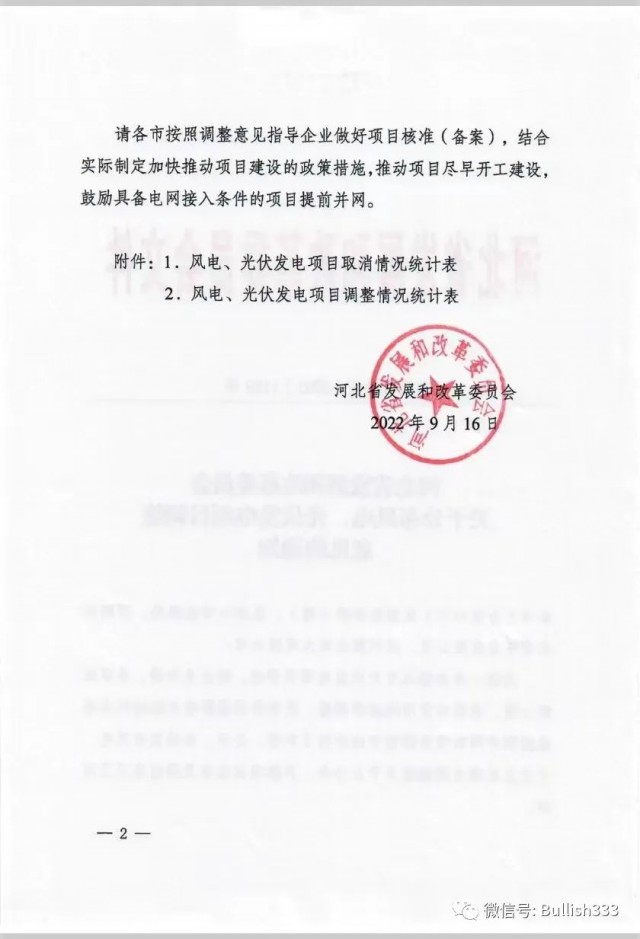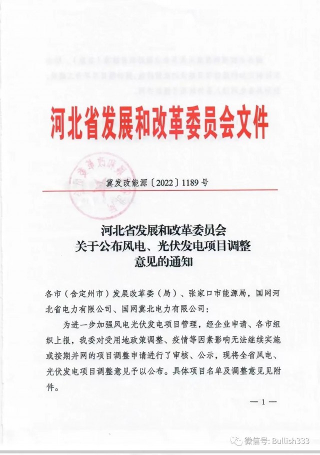 9月16日,河北發(fā)改委正式印發(fā)《關(guān)于公布風(fēng)電、光伏發(fā)電項目調(diào)整意見的通知》,對受用地政策調(diào)整、疫情等因素影響無法繼續(xù)實施或按期并網(wǎng)的項目進行了調(diào)整。