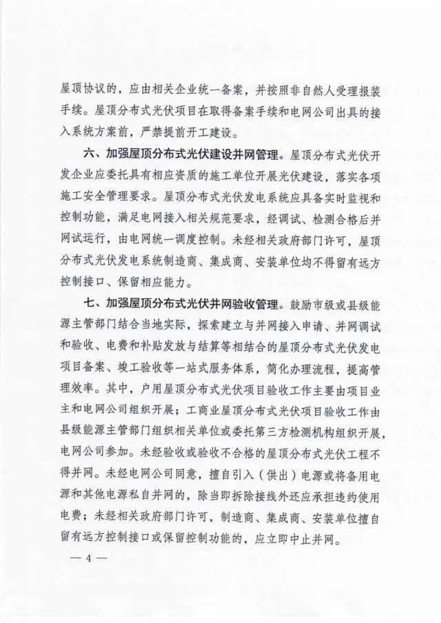 以自然人名義提交的并網(wǎng)申請(qǐng)資料中,如果含有以企業(yè)名義租賃自然人屋頂協(xié)議的,應(yīng)由相關(guān)企業(yè)統(tǒng)一備案,并按照非自然人受理報(bào)裝 手續(xù)。屋頂分布式光伏項(xiàng)目在取得備案手續(xù)和電網(wǎng)公司出具的接入系統(tǒng)方案前,嚴(yán)禁提前開工建設(shè)。
