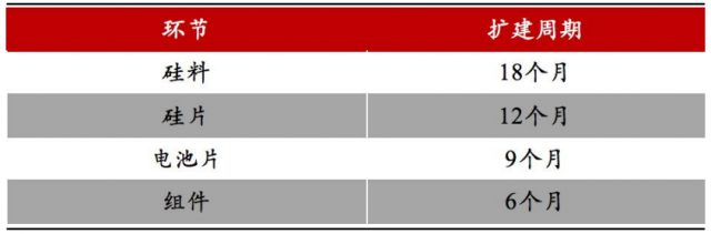 圖:光伏主產(chǎn)業(yè)鏈各環(huán)節(jié)擴產(chǎn)周期,來源:各公司公告,東亞前海證券研究所