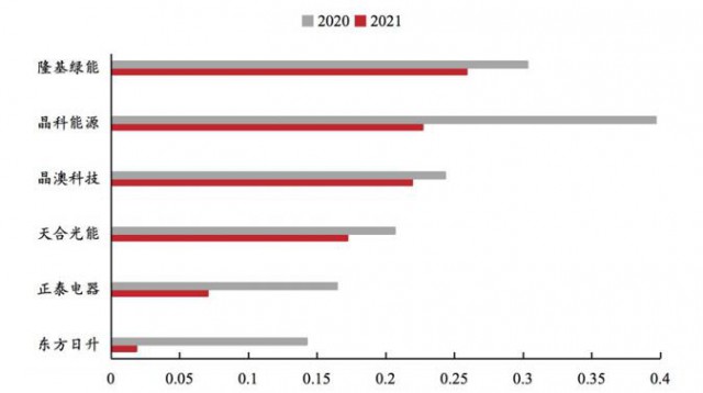 圖:2020-2021組件業(yè)務單瓦盈利情況(元/W),來源:Wind,東亞前海證券研究所