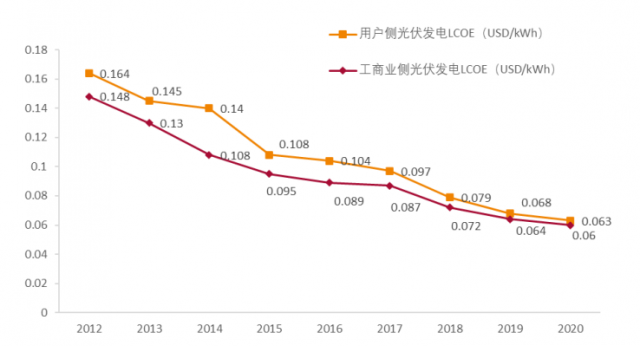 圖:2012-2020光伏發(fā)電度電成本下降趨勢,來源:天風證券