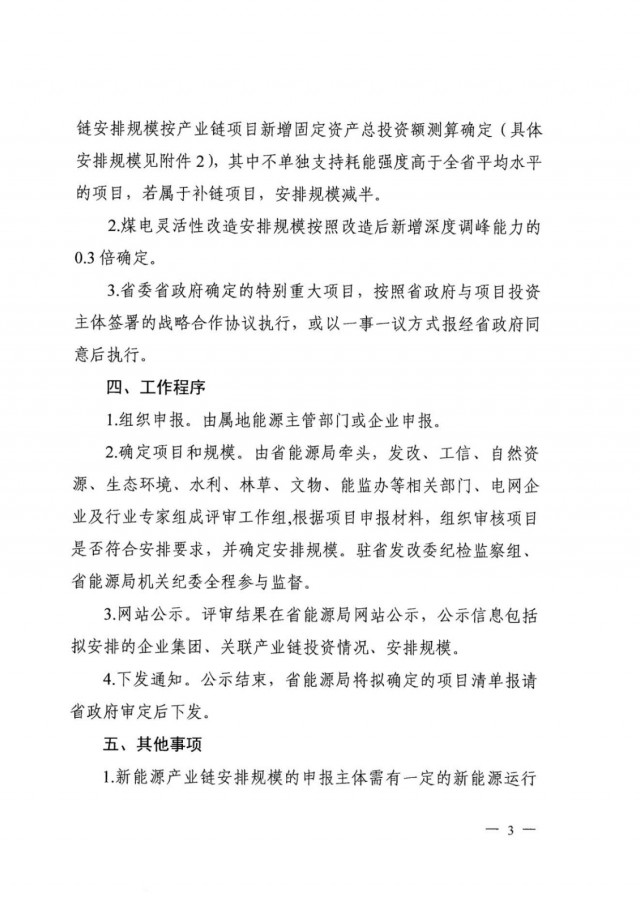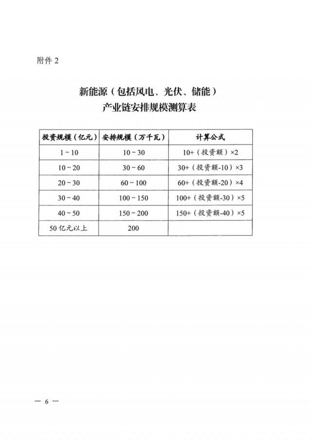 在項目規(guī)模分配規(guī)則方面則根據(jù)制造業(yè)項目的具體投資額按對應公式進行計算,例如1~10億元投資對應100~300MW項目規(guī)模,30~40億元投資對應1~1.5GW,50億元以上則統(tǒng)一為2GW項目規(guī)模。需要注意的是,不支持耗能強度高于全省平均水平的項目,若屬于補鏈項目則安排規(guī)模減半。