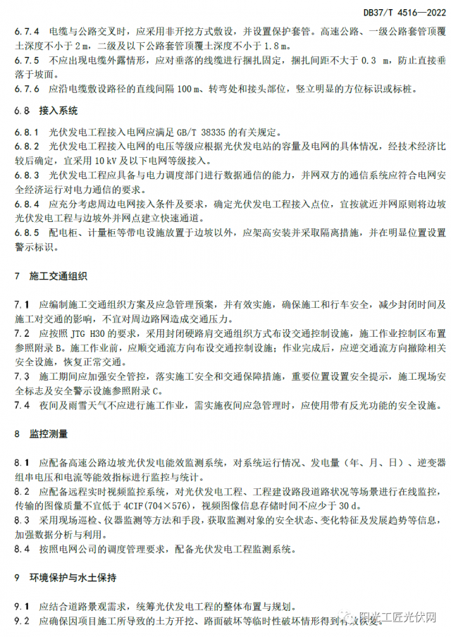 山東高速集團(tuán)黨委常委、副總經(jīng)理石振源回答說,本標(biāo)準(zhǔn)是在現(xiàn)行光伏發(fā)電工程建設(shè)技術(shù)標(biāo)準(zhǔn)體系下,根據(jù)高速公路特點(diǎn)制定的。標(biāo)準(zhǔn)規(guī)定了邊坡光伏發(fā)電工程的項(xiàng)目選址、施工交通組織、監(jiān)控測量、環(huán)境保護(hù)與水土保持等技術(shù)要求,內(nèi)容詳細(xì)、全面、完整,具有較強(qiáng)的專業(yè)性和操作性。