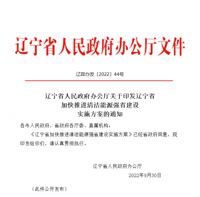 近日,遼寧省人民政府發(fā)布《遼寧省加快推進(jìn)清潔能源強(qiáng)省建設(shè)實(shí)施方案》。