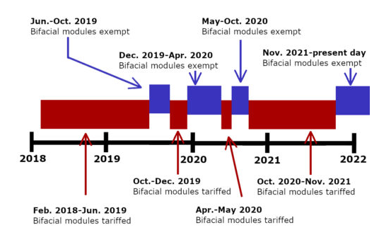 美國有關(guān)雙面光伏組件關(guān)稅征收和豁免時(shí)間表