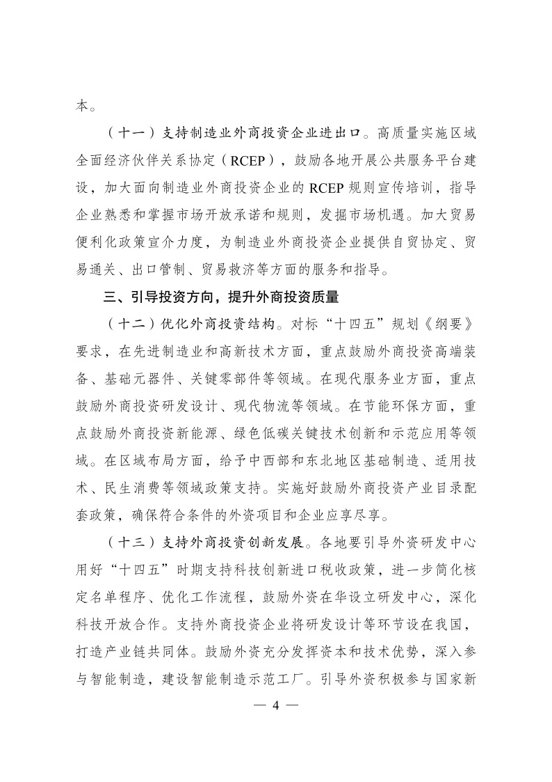 促進(jìn)外資擴(kuò)增量穩(wěn)存量提質(zhì)量的若干政策措施》的通知