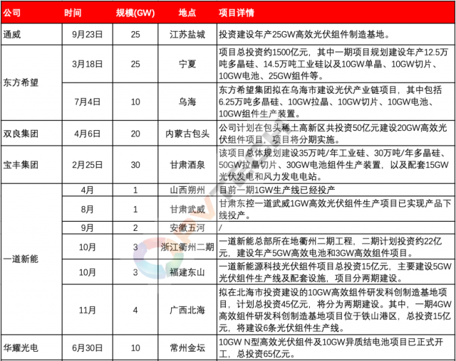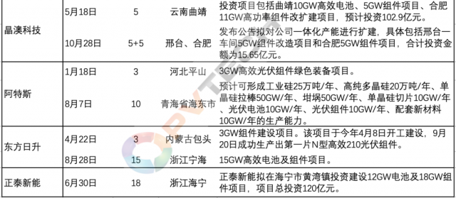 今年以來,以晶科能源、隆基綠能、天合光能、晶澳科技等為代表的行業(yè)第一梯隊(duì)主流組件大廠為鞏固各自市場(chǎng)地位、把握行業(yè)發(fā)展帶來的市場(chǎng)機(jī)遇,均在積極投資新建組件產(chǎn)能。