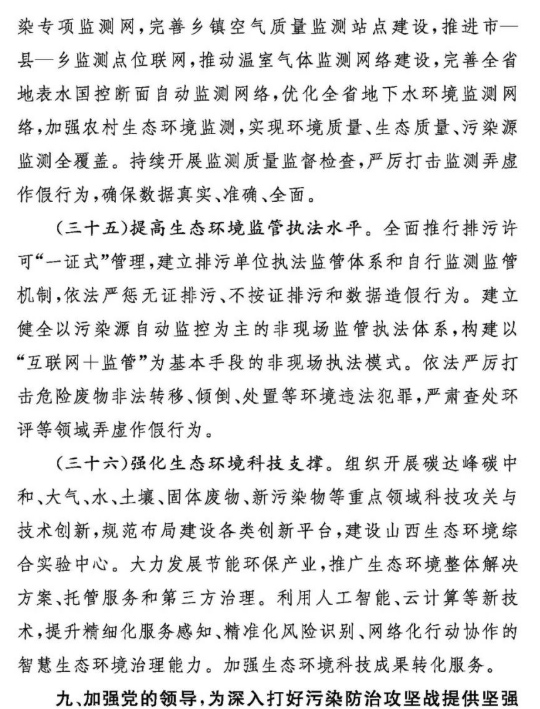 11月8日,山西政府網(wǎng)發(fā)布《關(guān)于深入打好污染防治攻堅(jiān)戰(zhàn)的實(shí)施意見》。