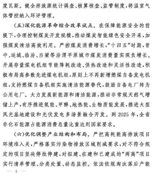意見提出,在保障能源安全的前提下,合理控制煤炭開發(fā)規(guī)模,推動(dòng)煤炭智能綠色安全開采,加強(qiáng)煤炭清潔高效利用。大力發(fā)展新能源和清潔能源,推動(dòng)非常規(guī)天然氣增儲(chǔ)上產(chǎn),有序推進(jìn)氫能、甲醇、地?zé)崮?、生物質(zhì)能發(fā)展,推進(jìn)大型風(fēng)光基地建設(shè)和光伏發(fā)電多場景融合開發(fā)。到2025年,全省非化石能源占能源消費(fèi)總量比重達(dá)到國家要求。