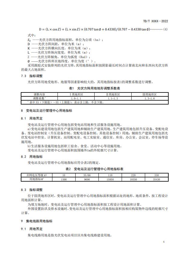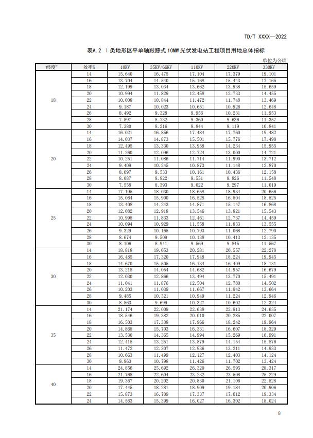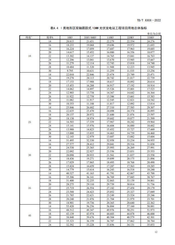 12月5日,自然資源部發(fā)布“《光伏發(fā)電站工程項(xiàng)目用地控制指標(biāo)》等3項(xiàng)行業(yè)標(biāo)準(zhǔn)報(bào)批稿公示”,文件指出:光伏發(fā)電站工程項(xiàng)目用地總體指標(biāo)按Ⅰ類地形區(qū)、Ⅱ類地形區(qū)、Ⅲ類地形區(qū)分別計(jì)算。光伏發(fā)電站工程項(xiàng)目處于兩個(gè)或兩個(gè)以上地形區(qū)時(shí),應(yīng)根據(jù)不同地形區(qū)分別計(jì)算用地規(guī)模,再累計(jì)得出總用地面積。項(xiàng)目用地總面積應(yīng)符合各地形區(qū)用地總體指標(biāo)之和的規(guī)定。
