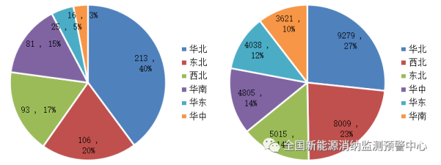 三季度各區(qū)域風電新增(左)、累計(右)裝機(萬千瓦)