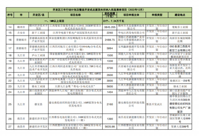 1月5日,江西省可再生能源中心發(fā)布了《開(kāi)發(fā)區(qū)三年行動(dòng)計(jì)劃及整縣開(kāi)發(fā)試點(diǎn)項(xiàng)目2022年12月競(jìng)爭(zhēng)性?xún)?yōu)選結(jié)果》,總規(guī)模99.4MW。截至目前,江西省已公示6-12月的開(kāi)發(fā)區(qū)三年行動(dòng)計(jì)劃及整縣開(kāi)發(fā)試點(diǎn)項(xiàng)目競(jìng)爭(zhēng)性?xún)?yōu)選結(jié)果,總規(guī)模1479.88MW。