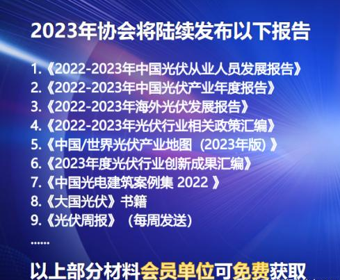除了兩份報(bào)告以外,協(xié)會(huì)還將發(fā)布《2022-2023年中國(guó)光伏從業(yè)人員發(fā)展報(bào)告》、《2022-2023年中國(guó)光伏產(chǎn)業(yè)年度報(bào)告》、《2022-2023年海外光伏發(fā)展報(bào)告》、《2022-2023年光伏行業(yè)相關(guān)政策匯編》、《中國(guó)/世界光伏產(chǎn)業(yè)地圖(2023年版)》、《2023年度光伏行業(yè)創(chuàng)新成果匯編》、《中國(guó)光電建筑案例集2022》,以及行業(yè)內(nèi)首本以代表性人物的人生經(jīng)歷為故事主線,講述企業(yè)和行業(yè)跌宕起伏發(fā)展過(guò)程的書(shū)籍——《大國(guó)光伏》。敬請(qǐng)關(guān)注。