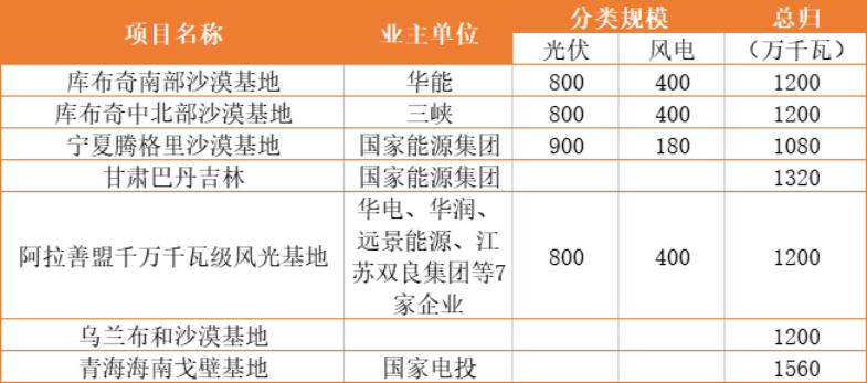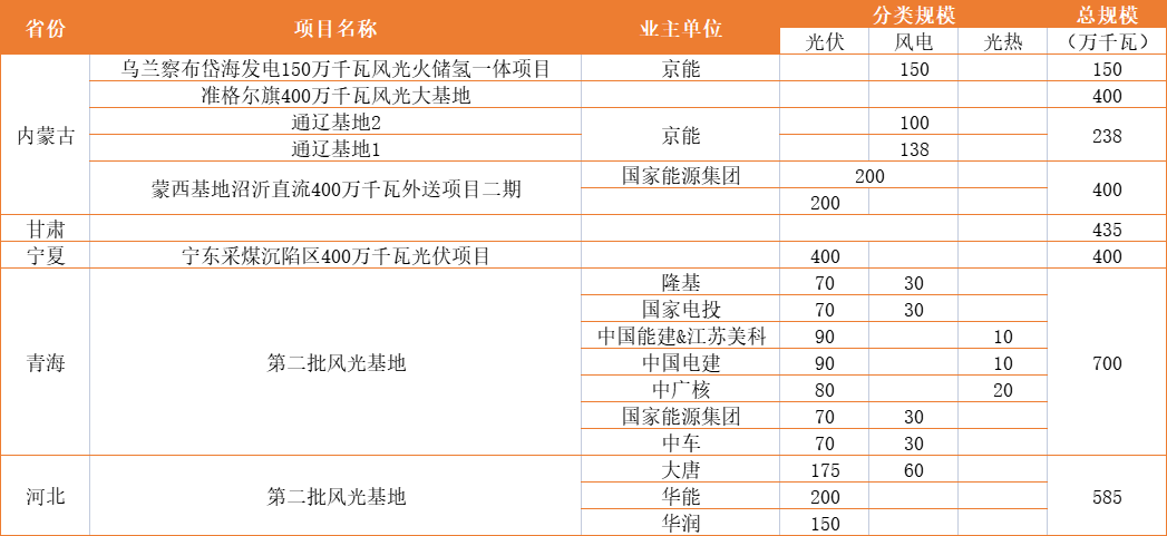 說明:上述數(shù)據(jù)通過公開信息整理,各企業(yè)數(shù)據(jù)存在未明確項目,具體以企業(yè)官方數(shù)據(jù)為準(zhǔn)。此外,大基地存在聯(lián)合體業(yè)主,本表數(shù)據(jù)以牽頭企業(yè)為主。