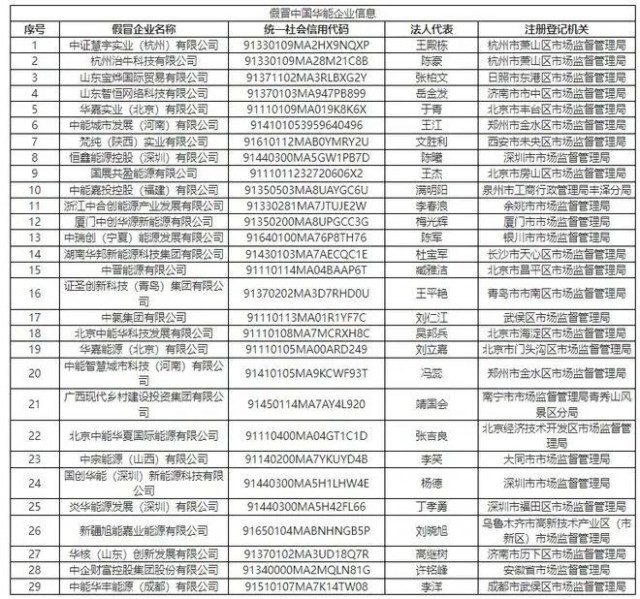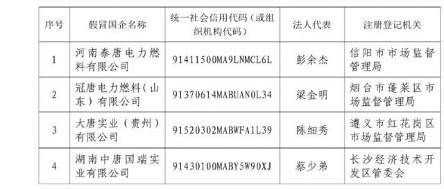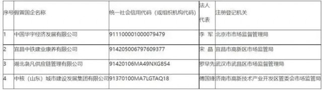 中央企業(yè)公告的假冒國(guó)企名單匯總(第一批)