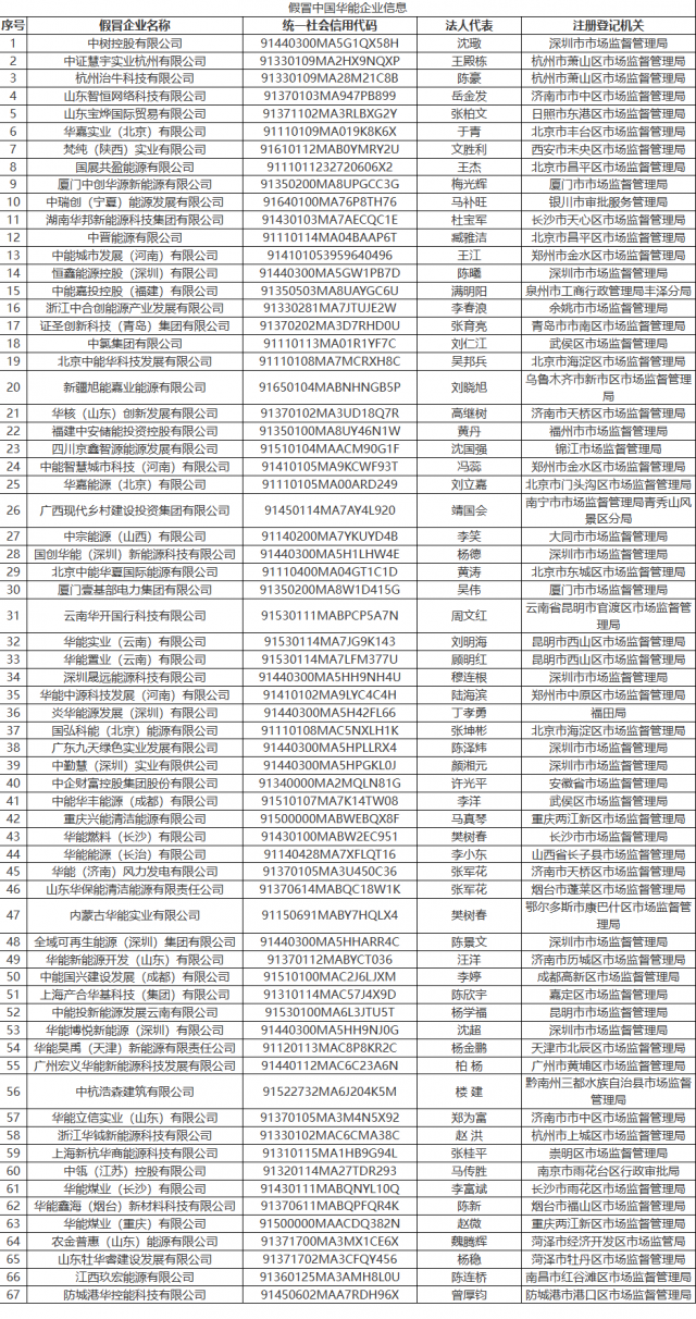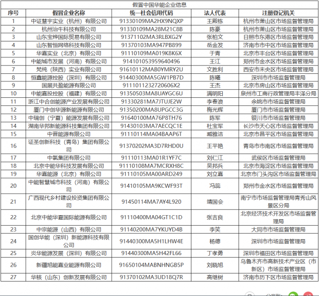 3月15日,華能集團(tuán)發(fā)現(xiàn)不法分子通過(guò)偽造其所屬企業(yè)證照和印章,在北京、深圳、杭州、鄭州、西安、福州、昆明、長(zhǎng)沙等地工商系統(tǒng)中將67家企業(yè)登記為華能(大連)能源熱力有限責(zé)任公司、華能置業(yè)有限公司、華能海外企業(yè)管理有限公司、華能新能源股份有限公司、華能煤業(yè)公司、華能能源交通產(chǎn)業(yè)控股有限公司以及天津華能楊柳青熱電實(shí)業(yè)有限公司下屬子公司,并可能存在涉嫌以中國(guó)華能及所屬企業(yè)名義開(kāi)展經(jīng)營(yíng)活動(dòng)的情形,其中部分企業(yè)侵犯了“華能”字號(hào),對(duì)中國(guó)華能的聲譽(yù)造成不良影響。