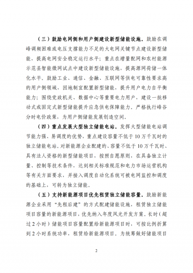 二、鼓勵(lì)新能源企業(yè)采用“先租后建”的方式配建儲(chǔ)能設(shè)施,租賃獨(dú)立儲(chǔ)能項(xiàng)目容量的的新能源項(xiàng)目,優(yōu)先納入年度風(fēng)光開發(fā)方案。