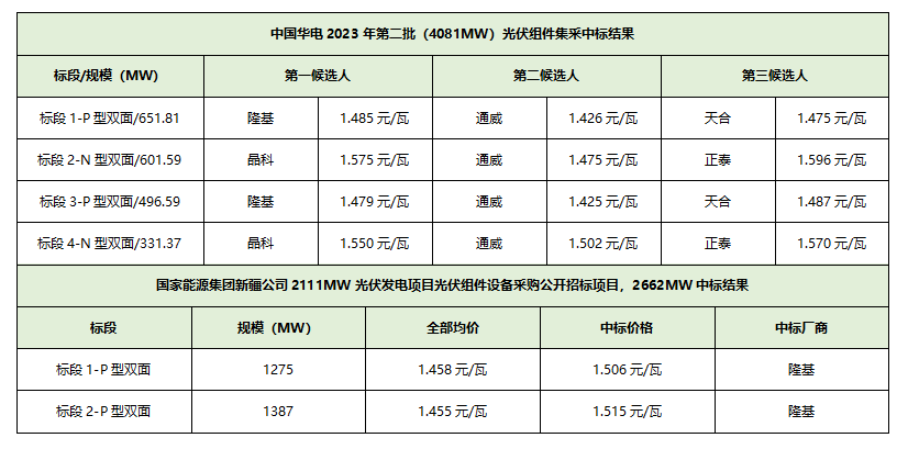 當(dāng)項(xiàng)目落地不再受制于組件價(jià)格,終端發(fā)電企業(yè)將更關(guān)注資產(chǎn)安全伴生的穩(wěn)定收益,“低價(jià)”已不是它們關(guān)注的主要判斷因素。近期中國華電2023年4081MW光伏組件集采、國家能源集團(tuán)新疆公司2111MW光伏發(fā)電項(xiàng)目組件設(shè)備采購招標(biāo)結(jié)果印證了這種趨勢。