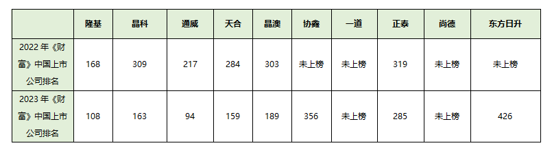 剛剛發(fā)布的2023年《財(cái)富》中國上市公司500強(qiáng)排行榜,以上半年中標(biāo)規(guī)模占比TOP10的企業(yè)為例,相較于2022年的排行榜,排名均伴隨賽道熱度不斷攀升。而近期由新華社、中國品牌建設(shè)促進(jìn)會等單位聯(lián)合發(fā)布的“2023中國品牌價(jià)值評價(jià)信息”能源化工組的列表中,隆基綠能與多家大型能源企業(yè)并駕齊驅(qū),排名第8,品牌強(qiáng)度917,品牌價(jià)值614.16億元,穩(wěn)居中國光伏行業(yè)第一位;同時(shí)上榜的還有阿特斯陽光電力,品牌強(qiáng)度874,品牌價(jià)值119.36億元;通威太陽能,品牌強(qiáng)度887,品牌價(jià)值25.32億元。品牌強(qiáng)度的評定是對企業(yè)技術(shù)、服務(wù)、產(chǎn)品等多維度的考核,而該榜單依據(jù)品牌價(jià)值這一市場化競爭的無形資產(chǎn),對企業(yè)未來發(fā)展做出預(yù)期判斷。