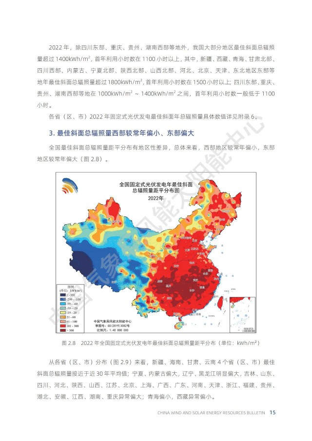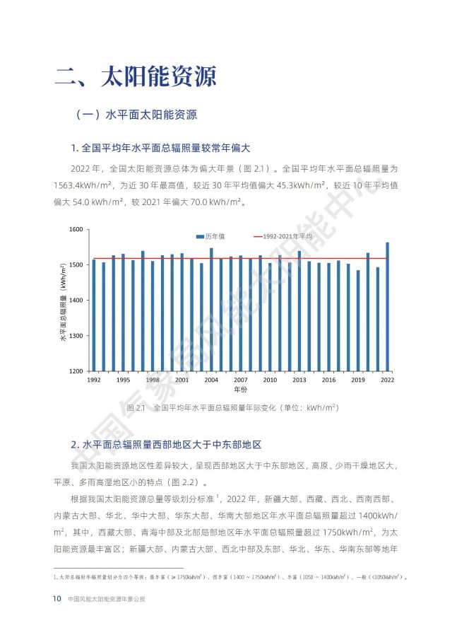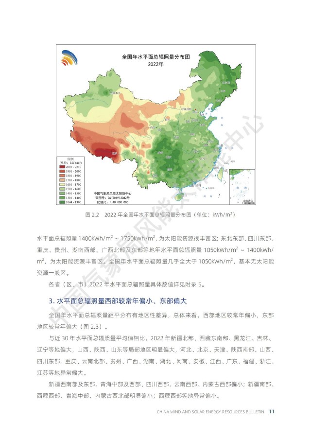 根據(jù)中國氣象局公布的《2022年中國風(fēng)能太陽能資源年景公報》,太陽能資源每年都會發(fā)生變化。其中,2022年為太陽能資源大年,全國平均的年水平面總輻射量比近30年平均值高出約3%。因此,2022年的光伏發(fā)電量應(yīng)該普遍偏好!