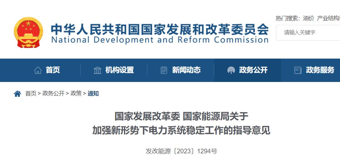 10月25日,國家發(fā)改委、國家能源局發(fā)布加強(qiáng)新形勢下電力系統(tǒng)穩(wěn)定工作的指導(dǎo)意見。