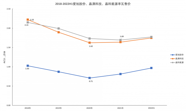 具體來看,愛旭股份的單W售價年均降幅達(dá)到16.8%,而出貨量復(fù)合增速和營收復(fù)合增速分別達(dá)到107%和73%,經(jīng)營業(yè)績復(fù)合增速高達(dá)53%。晶澳科技和晶科能源的單W售價年均降幅分別達(dá)到14.5%和10.2%,兩者在出貨量復(fù)合增速達(dá)到35.5%和31.0%的情況下,營收復(fù)合增速達(dá)到15.8%和17.7%。而經(jīng)營業(yè)績受益于良好的成本和費用控制能力,增速高達(dá)46.2%和95.8%。