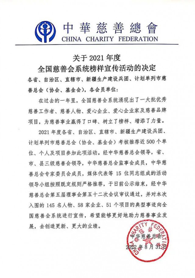 近日,中華慈善總會公布2021年度全國慈善會系統(tǒng)榜樣宣傳活動評選結果。晶澳科技董事長靳保芳榮獲全國慈善會系統(tǒng)“愛心企業(yè)家”榮譽稱號。