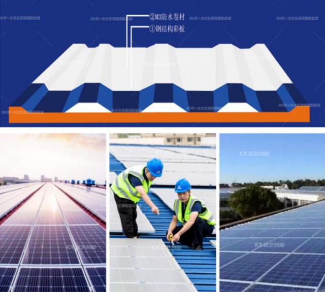 當前,在國家及地方政府政策的大力支持下,分布式光伏發(fā)電系統(tǒng)的應(yīng)用已越來越廣泛,已成為未來光電的重要發(fā)展方向。對于附著在建筑物上的光伏系統(tǒng),光伏組件在屋面上的安裝方式,不僅要考慮日照和陰影,而且要因屋面形式而異。在工程上,組件的安裝必須考慮荷重、耐風(fēng)壓、抗地震、排水、防水以及防雷等問題。因為工程主要涉及到光伏支架與屋面的結(jié)合,進而涉及屋面防水問題,因此設(shè)計方案、工程施工質(zhì)量的優(yōu)劣,不僅關(guān)系到建筑物的使用壽命,而且直接影響到建筑內(nèi)的生產(chǎn)活動或民生的正常進行。目前,由于分布式光伏發(fā)電處于市場導(dǎo)入期,競爭激烈,系統(tǒng)的設(shè)計、施工質(zhì)量良莠不齊,對所在工商業(yè)廠房金屬屋面的防水問題更應(yīng)予以重視。