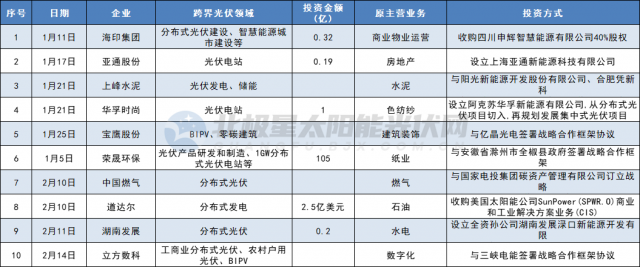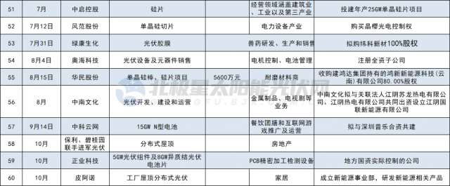 各家公司投資跨界方式不盡相同,有通過收購、設(shè)立光伏公司,或是投資新建光伏項(xiàng)目,或是與其他企業(yè)共建新公司,進(jìn)入領(lǐng)域從多晶硅、硅片、電池組件、光伏膠膜輔材以及光伏電站等多個(gè)細(xì)分賽道。