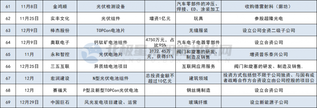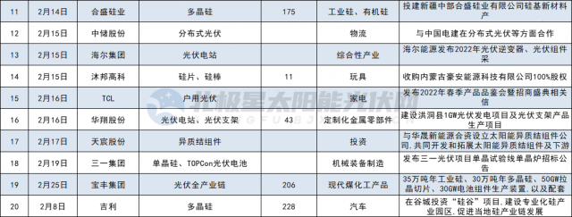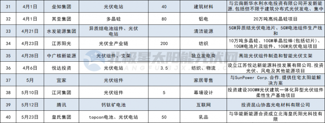 其他如多晶硅、硅片制造領(lǐng)域投資共7家,分別為合盛硅業(yè)、吉利、其亞集團(tuán)、清電能源、中啟控股、風(fēng)范股份、華民股份。光伏設(shè)備5家,分別為山東大業(yè)股份、東威科技、拓普集團(tuán)、奧??萍肌⒔瘌欗?。光伏膠膜3家,分別為中石化、信義儲(chǔ)電、綠康生化;此外,江蘇陽光、寶豐大手筆投資全產(chǎn)業(yè)鏈。