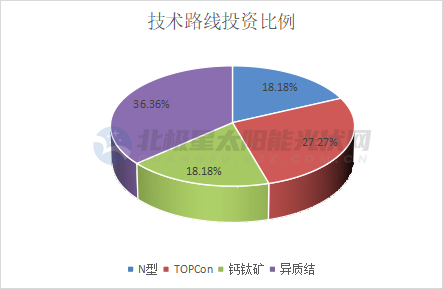 此外,電池組件環(huán)節(jié)也是跨界投資熱門,吸引了包括正業(yè)科技、宏潤(rùn)建設(shè)、三五互聯(lián)、奧聯(lián)電子等18家企業(yè)投資。從投資路線來看,主要以N型為主,其中投資異質(zhì)結(jié)的企業(yè)占到跨界電池企業(yè)總比的36.36%,投資企業(yè)以天宸股份、水發(fā)能源集團(tuán)等為代表;TOPCon占27.27%,以三一集團(tuán)、皇氏集團(tuán)、棒杰股份、賽福天等為代表。其次,被稱為“未來技術(shù)”的鈣鈦礦也獲企業(yè)青睞,吸引如騰訊、奧聯(lián)電子等企業(yè)入局投資。