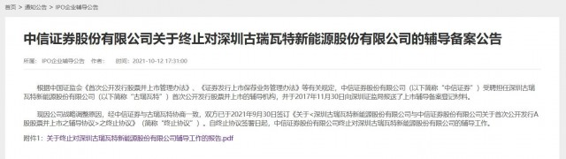 盡管沒有受到太多負(fù)面影響,但古瑞瓦特的IPO計劃一直沒能實現(xiàn)。直至2017年11月,古瑞瓦特報送上市輔導(dǎo)備案登記材料,輔導(dǎo)機構(gòu)為中信證券,其擬深交所IPO的計劃才浮出水面。