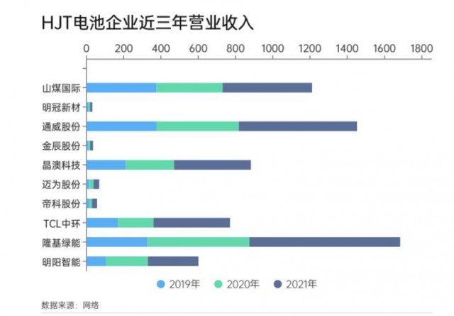 諸多公司已進入該賽道。主流企業(yè)包括明陽智能、隆基綠能、TCL中環(huán)、帝科股份、邁為股份、晶澳科技、金辰股份、通威股份、明冠新材、山煤國際等。PVInfolink預計,從2023年起,HJT技術(shù)路線將有10GW級的產(chǎn)出。