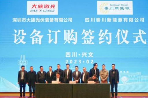 原標(biāo)題:公司動(dòng)態(tài)|大族激光與四川泰川新能源有限公司簽訂光伏設(shè)備訂購(gòu)合約暨光伏產(chǎn)業(yè)研究院授牌儀式