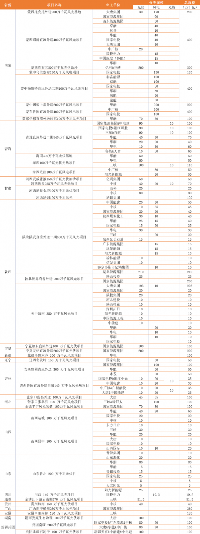 國家級大基地規(guī)劃及業(yè)主名單