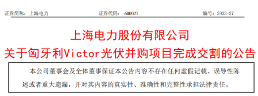 上海電力(600021)于4月3日發(fā)布公告稱,經公司董事會2023年第一次臨時董事會審議,同意公司并購匈牙利Victor項目,以不高于3789萬歐元收購標的公司100%股權(含股東貸款),并授權公司簽署相關協(xié)議和辦理相關手續(xù)。