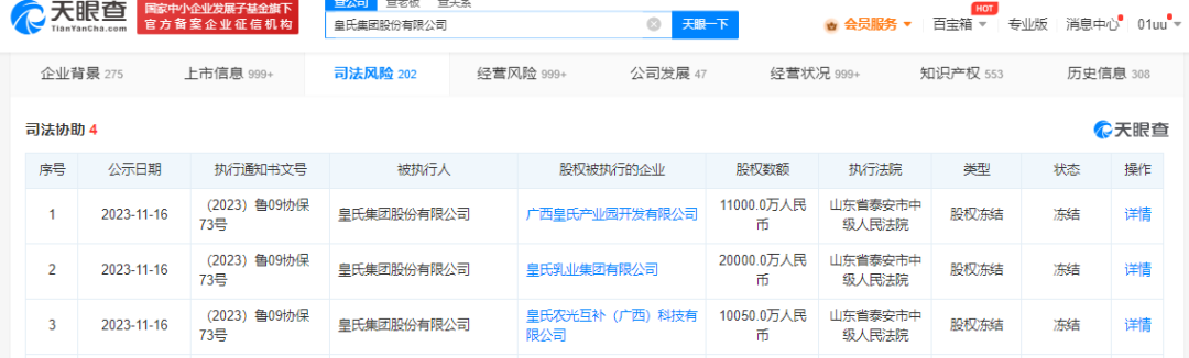 皇氏集團(tuán)4.1億股權(quán)被凍結(jié)!