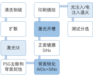 PERC技術(shù)以背面鈍化層的沉積和激光開槽為主,后續(xù)在此基礎(chǔ)上進(jìn)行工藝改進(jìn)優(yōu)化時(shí)增加了正面的SE激光和光注入/電注入退火等工藝,未來(lái)隨著光伏技術(shù)的不斷進(jìn)步,為提升PERC電池的量產(chǎn)效率,也必將會(huì)對(duì)電池工藝進(jìn)行進(jìn)一步的改進(jìn)與優(yōu)化。