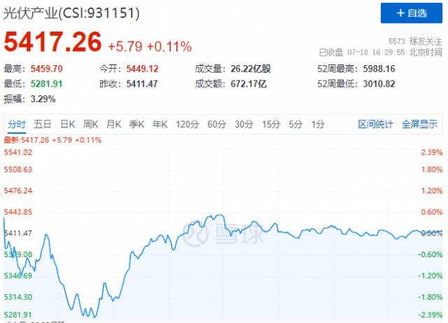 7月18日,光伏板塊迎來分化行情,逆變器、電站、HJT概念股漲幅居前,而硅片、電池、金剛線概念股則全線大跌。受此影響,中證光伏產業(yè)指數(CSI:931151)報收5417點,微漲0.11%。