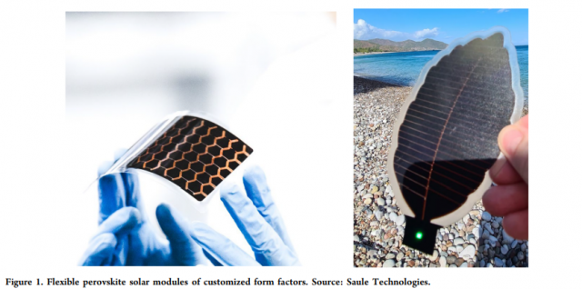 塑料箔的使用還為光伏產品提供了一系列新的優(yōu)勢,其中非成本相關因素可以提供重要的杠桿作用,例如重量輕、比功率高以及易于與各種表面集成。(7) 將鈣鈦礦與成熟的光伏技術區(qū)分開來的一個重要因素是高水平產品定制的可能性,符合客戶在特定應用中的需求。 這可以在同時進入市場的同時實現更長時間的技術孵化,從而緩解大規(guī)模市場進入的挑戰(zhàn)。(8) 定制的柔性鈣鈦礦太陽能組件示例如圖 1 所示。