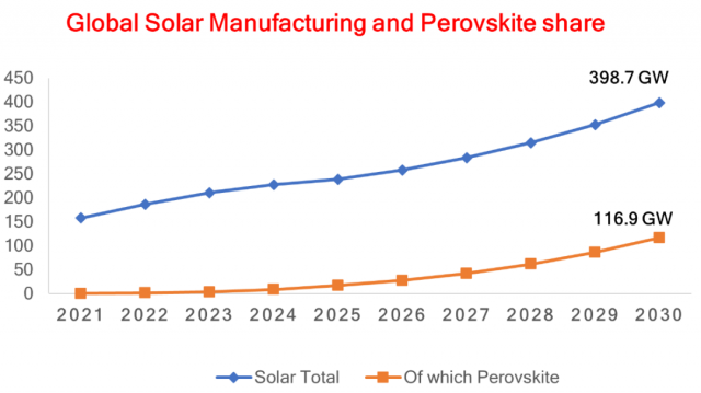 鈣鈦礦在過去十年中作為一種新型的高效太陽能電池材料脫穎而出,其功率轉換效率達到了25.7%。(1,2) 鈣鈦礦光活性材料具有固有的優(yōu)勢,可實現高功率轉換效率,例如長載流子擴散長度、高載流子遷移率、低激子結合能、高吸收系數和通過交換前體組分的帶隙可調性。(3,4) 這些材料的另一個重要優(yōu)點是可以在低溫下通過溶液方法來沉積薄膜,它可以通過高通量的卷對卷工藝在柔性聚合物基材上進行經濟高效的生產。(5) 預計到2030 年,鈣鈦礦太陽能技術將超過全球光伏市場的29%。(6)