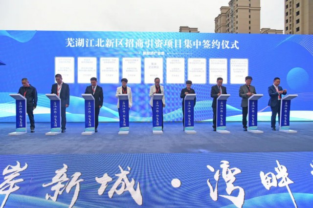 ▲蕪湖江北新區(qū)招商引資項(xiàng)目集中簽約儀式-新經(jīng)濟(jì)產(chǎn)業(yè)類