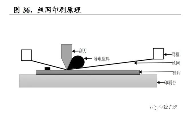 光伏電池表面膜層不具備收集電子及空穴的能力,因此需要在電池的正背面 印刷銀漿或鋁漿,并通過高溫?zé)Y(jié)形成良好的金屬半導(dǎo)體接觸,將光生載流子導(dǎo) 出至外電路中形成電流。