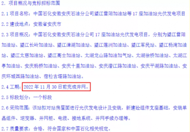 該17座加油站光伏項目要求在2個月內(nèi)并網(wǎng)!